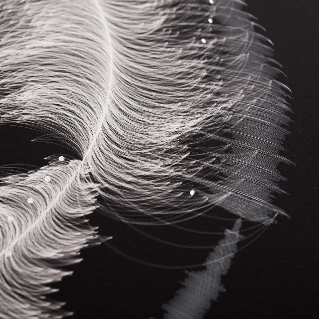 Archival pigment print on Hahnemuhle German Etching 310gsm, with cut edges to finish. Hand-finished by the artist with chrome ink details