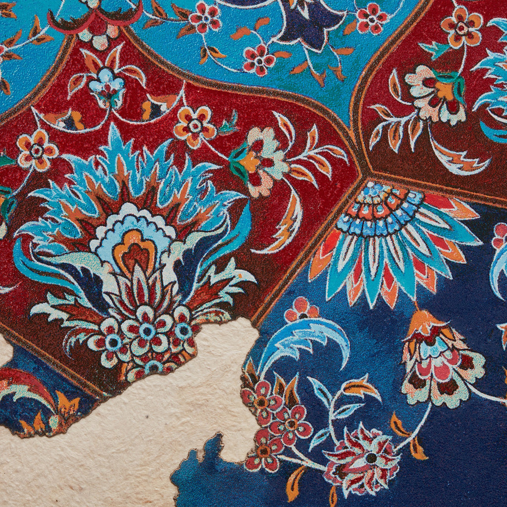 Born in 1989, Seife grew up in Miami to immigrant parents who were supportive of his creative ambitions. After playing in bands throughout his adolescence; Seife, a talented graphic designer, began creating album artwork for hip hop artists. He designed Big Sean’s lion logo, painted backdrops in Nicki Minaj’s music videos and created artwork for both Pharrell Williams and Mac Miller. Seife was not content solely actioning the creative vision of others, and so began to create his own work. The inspiration for Seife’s work is based around the notion that we can reinvent the past using modern day materials and compositions, allowing the excellence of an old craft to be admired by a younger generation. Seife was inspired by both his own Middle Eastern heritage and the complex artistic practice of Persian rug weaving.