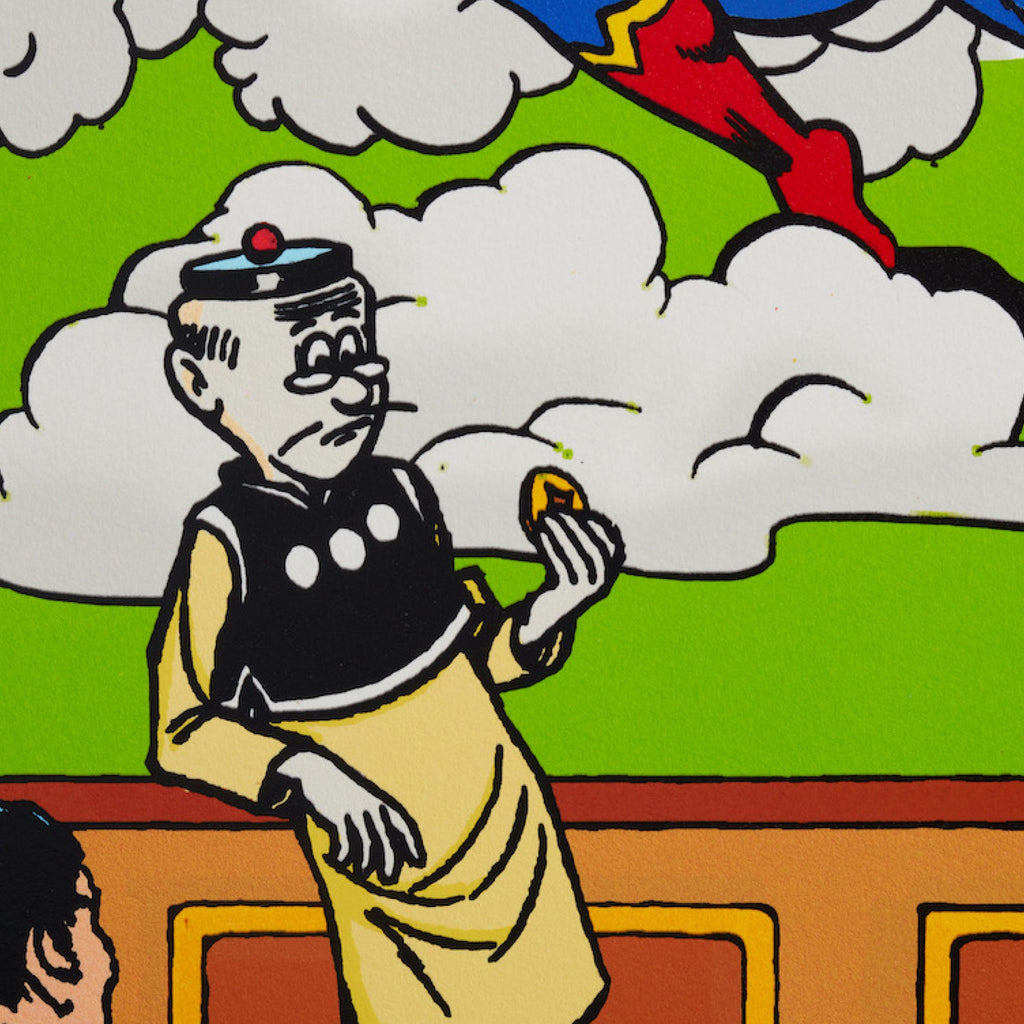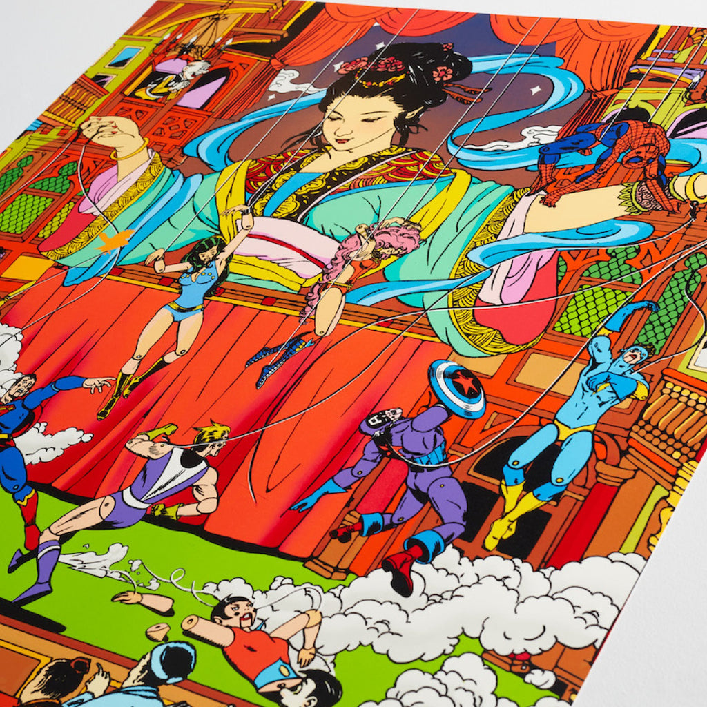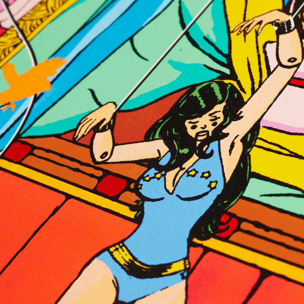 40 colour silk screenprint, with silver embellishment and spot varnishing on Somerset Tub Sized 410gsm paper, and cut edges. AR feature included, activated and authenticates by ZHEN. (App available on for iPhone and Androids)