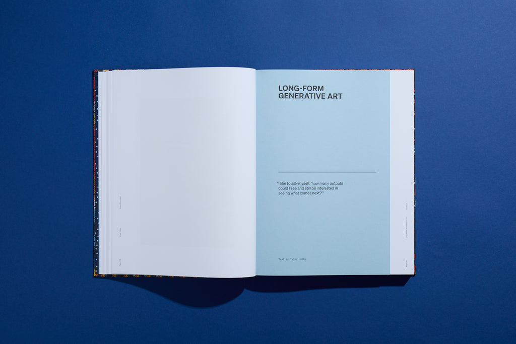 Structured around the concept of dualities, the book explores Hobbs’ systematic approaches to art-making, the creative relationship between man and machine, computer-led aesthetics and the interplay of repetition and emergence across long-form generative projects.