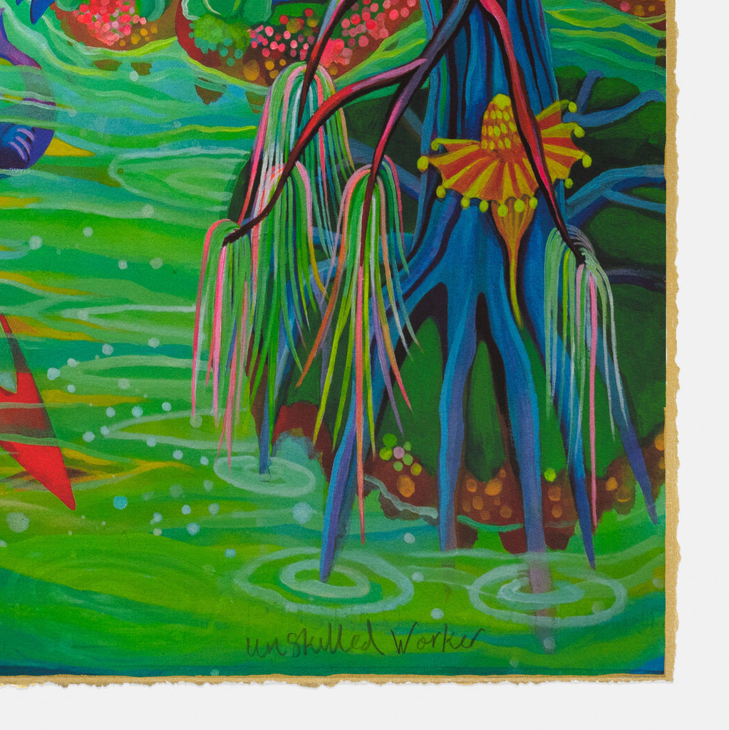 Helen Downie is a London based critically-acclaimed artist, best known for her idiosyncratic and expressive style of painting. Working under the moniker of UnskilledWorker, her paintings are both intimate and evocative, mixing characters and nature with the ephemeral and fantastical. Downie’s work has attracted a large audience worldwide and has appeared in many international publications, including Artnet, The New York Times, Vanity Fair, Vogue, Dazed, Harper’s Bazaar and i-D. Her paintings are collected nationally and internationally and have been exhibited at galleries across the world including London, Hong Kong, Seoul, Madrid, Tokyo and Shanghai.